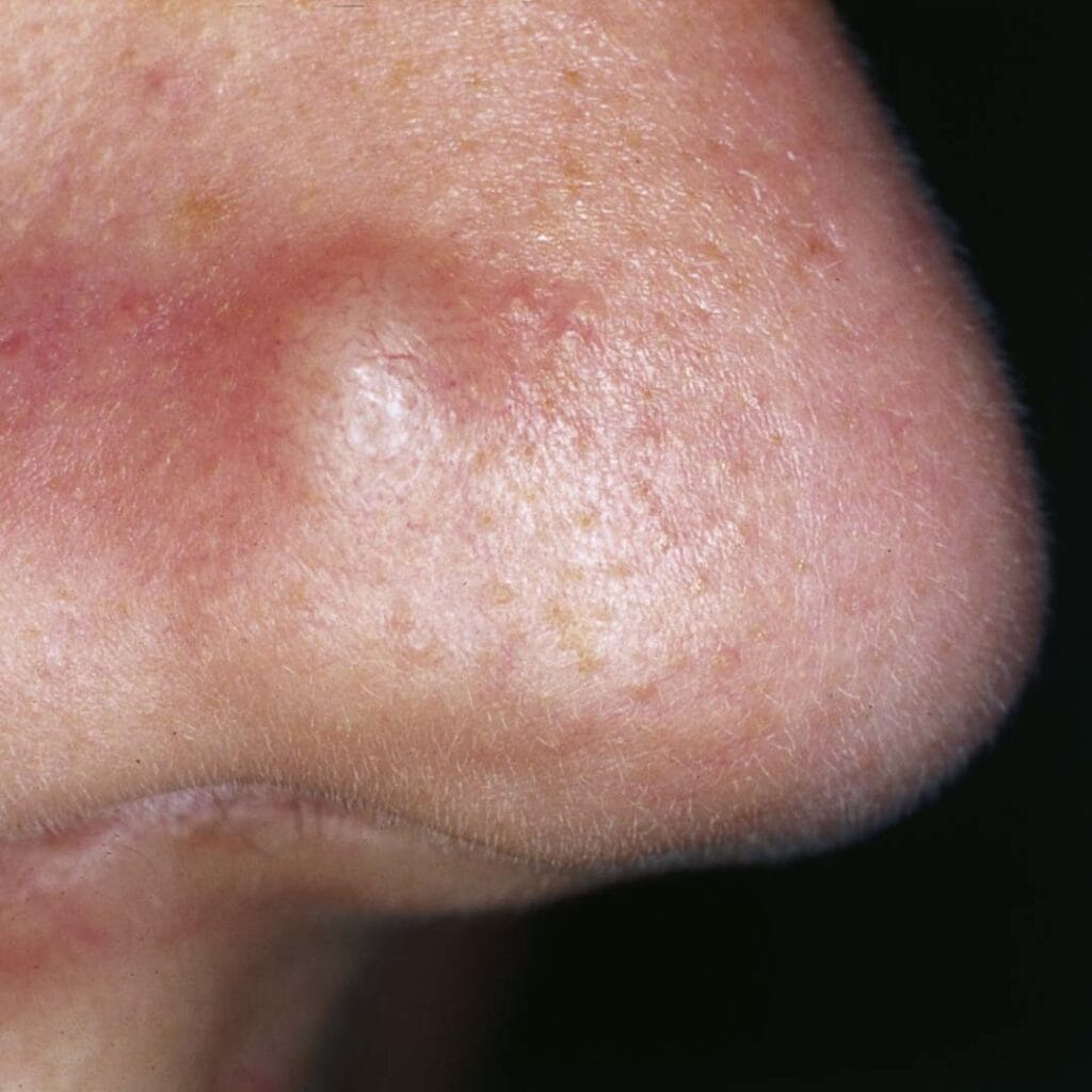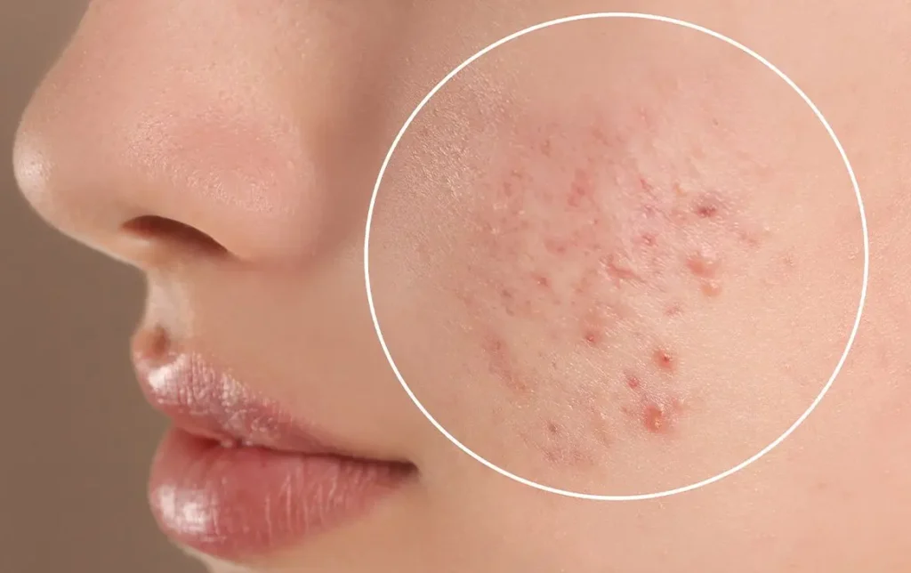 - Flesh-colored bumps on the skin (comedones)